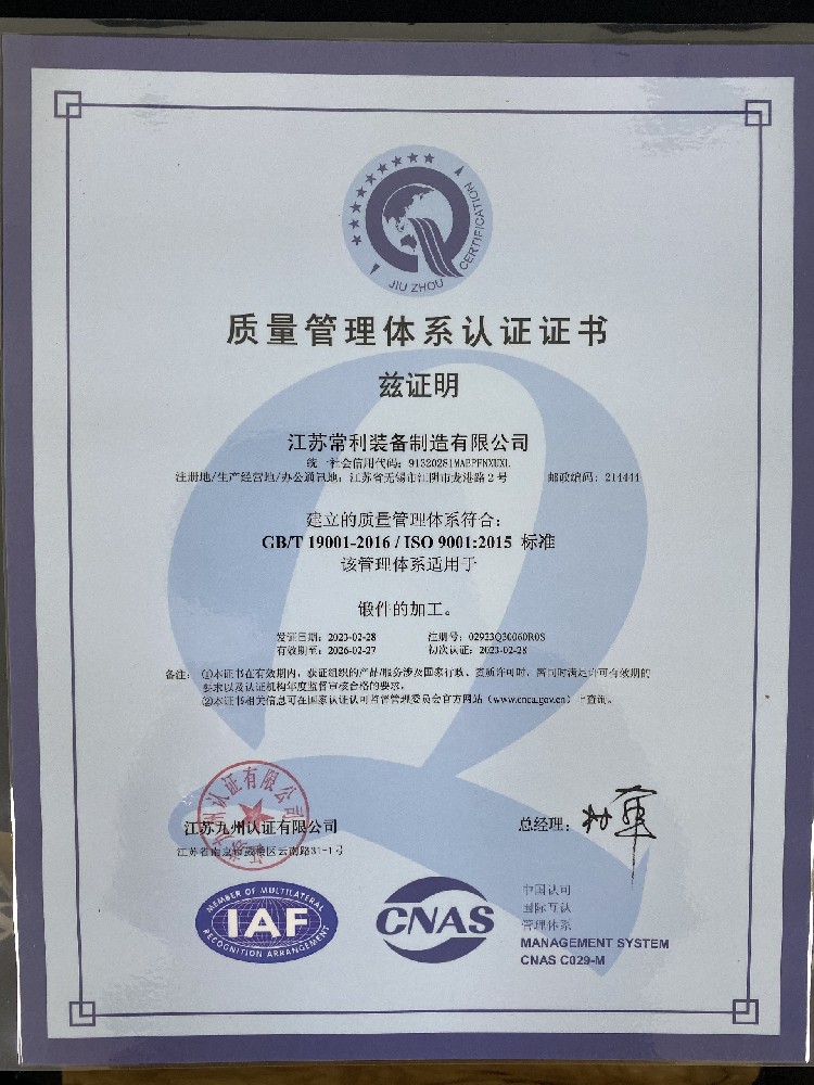 江苏常利装备制造有限公司,位于江苏江阴市,是一家专业生产锻造圆钢/方钢、轴类锻件、环形锻件、筒类锻件的,集锻造加工、热处理、机械加工、备件成品加工于一体的钢锻件制造企业。公司拥有强大的特殊钢供应渠道作支撑,尤其在特钢锻件方面更显资源优势,主要设备有2000吨水压机、碾环机、3吨锻锤、2吨锻锤、1吨锻锤、750KG锻锤、30T热处理调质炉,车床、锯床 等30多台设备,生产锻件从100Kg-20000Kg大型锻件,主要产品为锻造圆钢(φ80-1100mm),方钢(70-1000mm)×(200-1500mm),钢锭(0.75吨-30吨),其中包括“合结钢、碳结钢、不锈钢、弹簧钢、轴承钢、轧辊等多种...